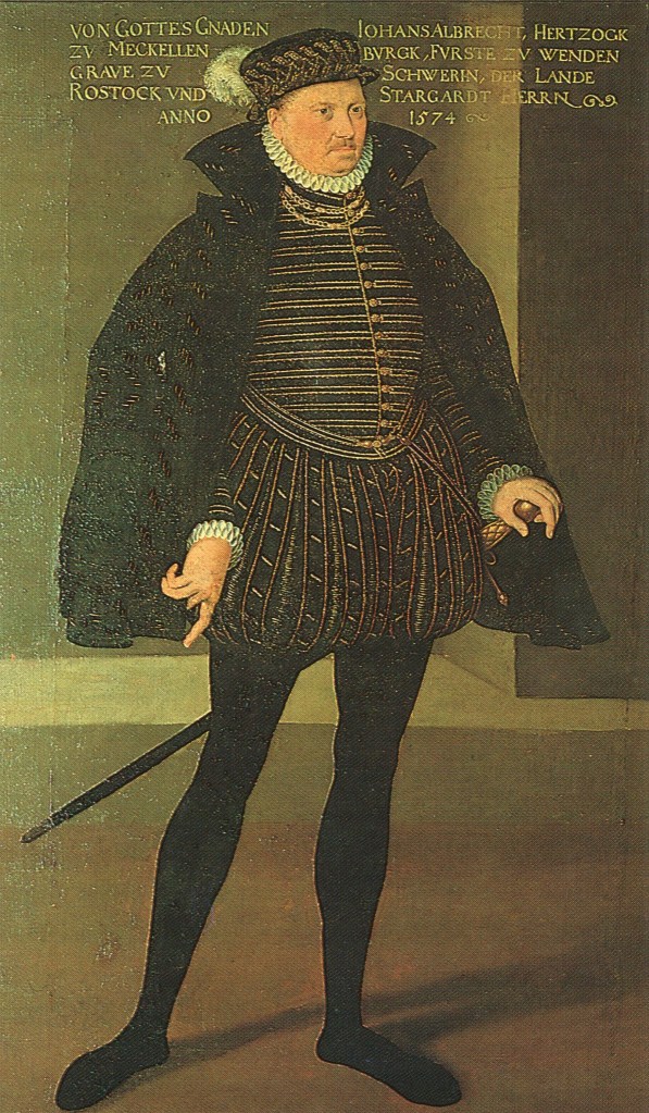 Bigger troubles came, of course, in the sixteenth century, with the outbreak of the reform movement led by Martin Luther. Duke Henry V was an early supporter and personal correspondent with Luther, but earned his nickname ‘the Pacific’ by trying hard not to get swept into the violence that engulfed Germany in the 1520s and 30s. He remained loyal to the Emperor. His brother (another Albert, of Güstrow) was even more loyal, and resistant to the new ideas, and fought on the Emperor’s side, but the family as a whole remained committed to the Protestant cause—Henry’s sons and nephews became the first Lutheran bishops of Schwerin and Ratzeburg, and both territories would eventually be secularised and incorporated into Mecklenburg territory. These two ecclesiastical principalities had often been useful to the dynasty to give younger sons territories to govern, so now there was even more pressure to divide up the duchy according to Germanic custom. Yet the leading female monastic establishment, Ribnitz, remained headed by Catholic Mecklenburg princesses until the last one died in the 1580s. It is important to remember that confessional divides in this period were not as clear cut as we like to think. Nevertheless, the Lutheran state church of Mecklenburg was formally established and recognised by the territorial diet in 1549.