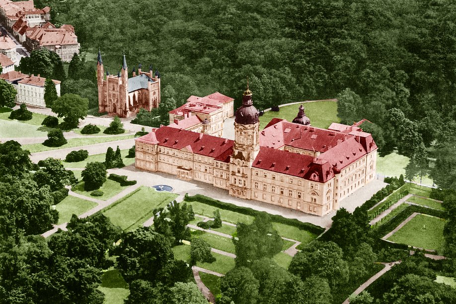 In this period of revival, Neustrelitz Palace would retain its 18th-century look, but new palaces were built nearby in the 1850s, the Marienpalais, for Grand Duchess Marie, and the Carolinenpalais for the divorced Crown Princess of Denmark, Caroline Marianne, both built in a more sober style than the Romantic fantasy in Schwerin.