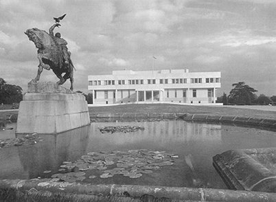In 1953, the ducal title and the bulk of the estate therefore passed to William Grosvenor, already a man in his late fifties, who had lived with a caretaker all of his life due to brain damage incurred at birth. When he died in 1963, the title moved to still another branch of cousins, two brothers, Gerald and Robert, the 4th and 5th dukes. Gerald had had a long military career, as lieutenant-colonel, then a Yeoman of the Guard from 1952. Once he became duke he set about bringing the Grosvenor Estate more up to date—expanding holdings into North America and Australia and focusing attention on the decaying Waterhouse buildings at Eaton. It was decided to demolish most of the grand old buildings, leaving the clock tower, the chapel and the stables (which today houses the Grosvenor museum and a carriage museum), and building in its place a more modest house, though this was not built until the early 1970s, once the baton had passed from the 4th Duke to the 5th. This house, what I reckon is the fifth house on the site, was designed by the architect John Dennys, and was not seen as a success by those who viewed it, though I’d say credit should be given for trying to forge a new modern style for the English country house.