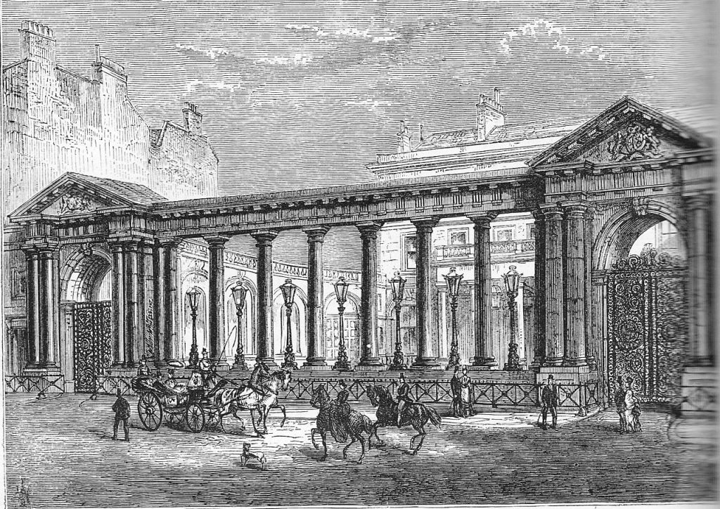 Their son, the 2nd Earl Grosvenor, would turn his attention once again to London, and develop the area a bit further to the west, named Belgravia in honour of the family’s newer property in Cheshire. As was seen in the recent television drama of the same name, this residential area designed by Thomas Cubitt became the centre of aristocratic life in the Regency period of the early 19th century. The new royal residence, Buckingham Palace, lay between Mayfair and Belgravia, and formed an effective beating heart of the new aristocratic quarter of west London. Further south, nearer the river, was Pimlico, developed as a residential area a bit later. The Earl moved his own London residence from Millbank House (on the Thames) in 1805 to Mayfair, to a house he purchased from the Duke of Gloucester which he renamed Grosvenor House. This is on Park Lane, the road bordering Hyde Park, one of the best addresses in the city. A massive colonnade was added later in the century, and in 1889 Grosvenor House became one of the first electrified buildings in the country. It was sold in the 1920s and mostly demolished, to be reborn as the Grosvenor House Hotel which remains today in all its splendour.