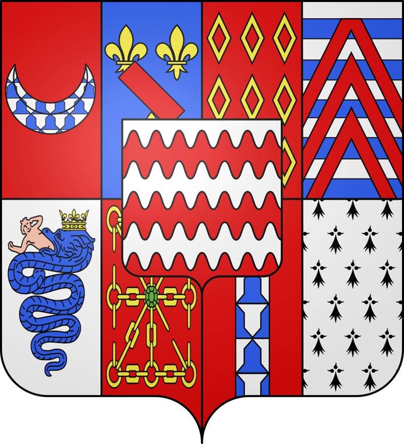 They continued to acquire feudal lands, and began to augment their status by playing up their semi-mythical princely origins by adopting the title ‘Prince of Tonnay-Charente’. There was in fact no principality of Tonnay-Charente, and the princely title—like others assumed in this period by noble families of this region, like the La Rochefoucaulds at nearby Marcillac, or Mortagne for the Richelieu family—was never formally created, and entailed no special juridical or legal privileges, but was tolerated by French monarchs who understood that the more glittering titles worn by (loyal) members of their court, the brighter the sparkle to foreign visitors. The coat-of-arms adopted by the Mortemart branch also flaunted their semi-royal status, quartering the Rochechaourt arms with those of the Visconti of Milan, the dukes of Brittany and the kings of Navarre.