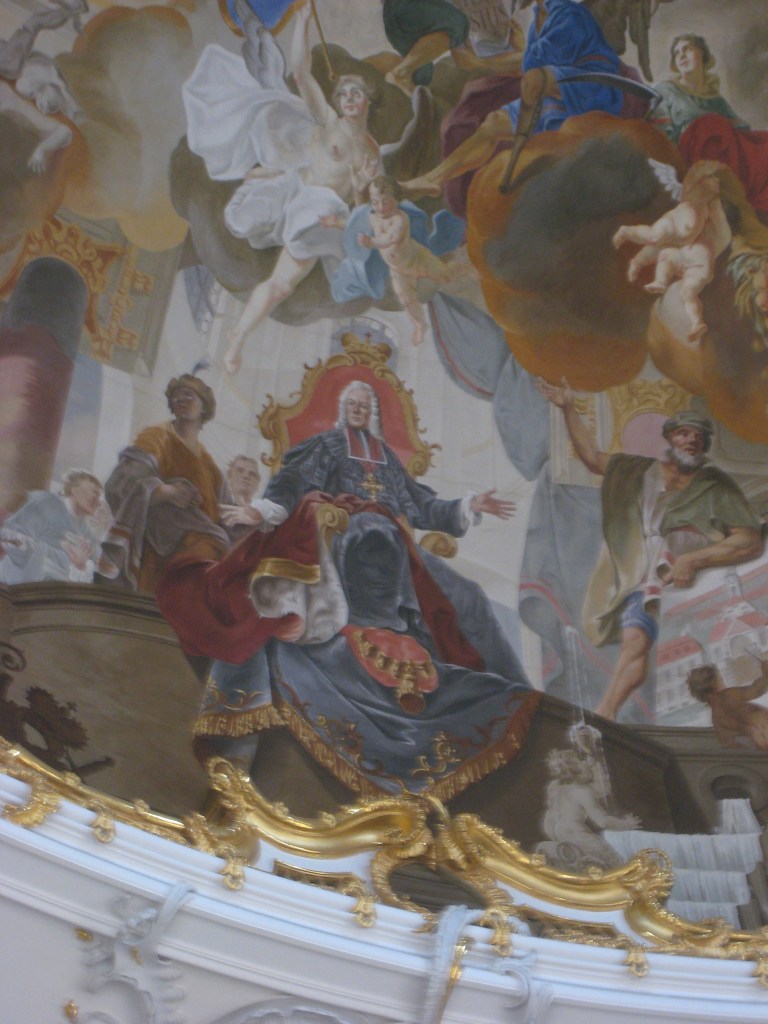 The next morning I headed just a few miles up the road to Bruchsal, the palace of the Prince-Bishops of Speyer. Like Rastatt, this was a ‘new build’ following the devastations of the French army in the Nine Years War, and the appearance of the building is similar, a mixture of French high baroque with something a bit more Rhenish. The bishops of Speyer—a city on the other side of the Rhine from here—had for centuries maintained an urban residence near their cathedral, and a rural retreat located just across the river at Udenheim. Feeling threatened by militant Protestants in the early 17th century, Bishop Philipp Christoph von Sötern fortified Udenheim and renamed it after himself, Philippsburg. This fortress, at a strategic spot on the Rhine, became a key target for the French, and was actually occupied by them for much of the century. The bishop of Speyer had to look elsewhere and settled in Durlach, a few miles to the east. It had been site of a royal residence way back in the 10th century, but had been episcopal property since the 11th. In 1716 it became the formal residence of the prince-bishop, and starting in about 1720, a grand new palace was created by Cardinal-Bishop Damian Hugo von Schönborn.