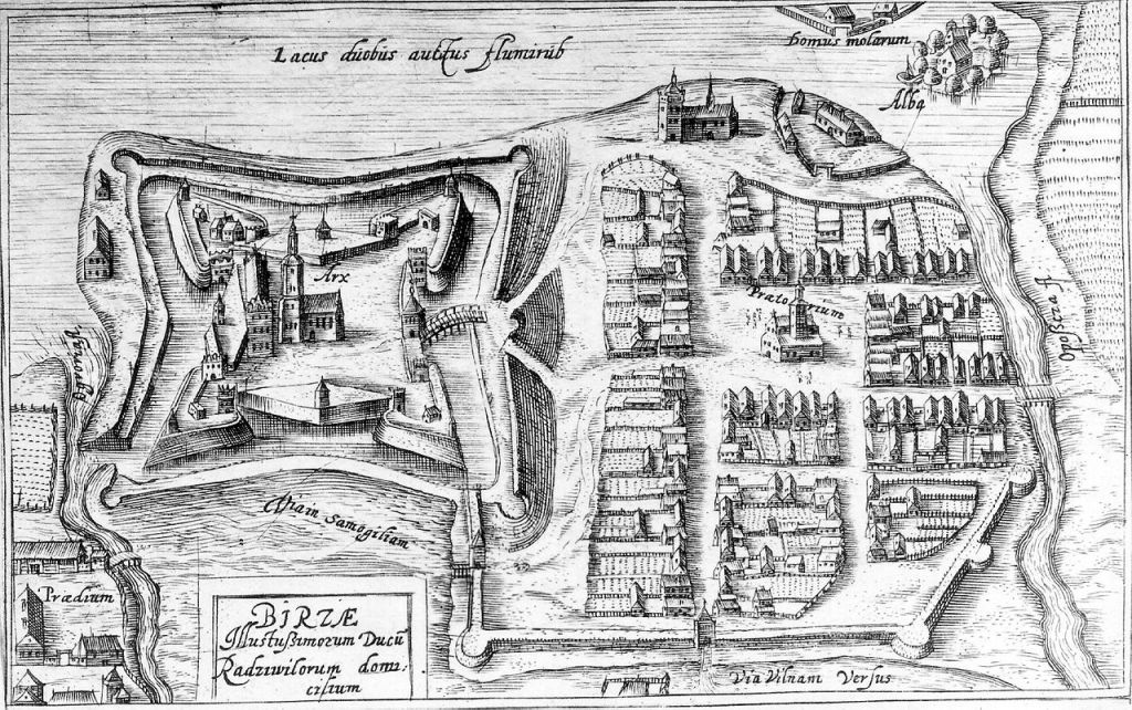 Janusz’s brother, Prince Krzysztof II (d. 1640), also established his name fighting against the Russians and the Swedes, and like others in his family, became increasingly opposed to the rule of King Sigismund III. Alienated from the court, he established himself at this branch’s new seat, Biržai (Birże in Polish—both accent marks indicate a ‘zh’ sound), located in the northern regions of Lithuania. His residence was a new building, from the 1580s, in Renaissance style, with an artificial lake. Krzysztof renovated it again in the 1630s, along Italianate lines, and filled it with treasures and curiosities from all over the world. He developed his stables into one of the largest and most famous in Europe. Unfortunately Biržai was almost completely destroyed by Swedish armies in 1704, but it was reconstructed from the ruins in the 1980s and today houses a regional history museum.