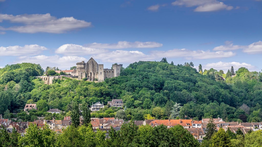 After the 1st Duke of Luynes died in 1621, Marie de Rohan re-married a much older man, Claude de Lorraine, whose rank was second to none in France, making Marie a princess of the House of Lorraine and thus an unassailable political force in France and indeed in Europe. Claude was the younger son of the Duke of Guise, and had been given the Duchy of Chevreuse as his part of the patrimony when he came of age. Chevreuse was a lordship in a wooded valley southwest of Paris, with its massive fortress of La Madeleine built in the 12th century, then reinforced by French kings in the Hundred Years War. The lordship was sold to King François I’s mistress, Anne de Pisseleu, for whom it was erected as a duchy in 1546. Charles, Cardinal de Lorraine, one of the most powerful members of the French court in the mid-16th century then purchased it for use as his own country house in 1551. When he died it passed to his Guise nephews, and eventually to Claude, who held the dukedom and its castle until his death in 1657. It then passed to his widow, Marie de Rohan, due to a complex financial arrangement between the spouses. In 1663, she gave it to her son from her first marriage, the 2nd Duke of Luynes, with the idea that it would be used to establish a secondary line. In another complex financial arrangement, in 1667 it was exchanged with Louis XIV for the county of Montfort-l’Amaury (see next). The King gave the estate of Chevreuse to the Dames of St-Cyr (where the school was later established by Madame de Maintenon), but two centuries later, in 1853, the Duke of Luynes repurchased the ruins of the Château de la Madeleine. In the 1970s, his efforts to sell the estate led to much (but not all) of it being purchased by the regional council and opened as a natural park.