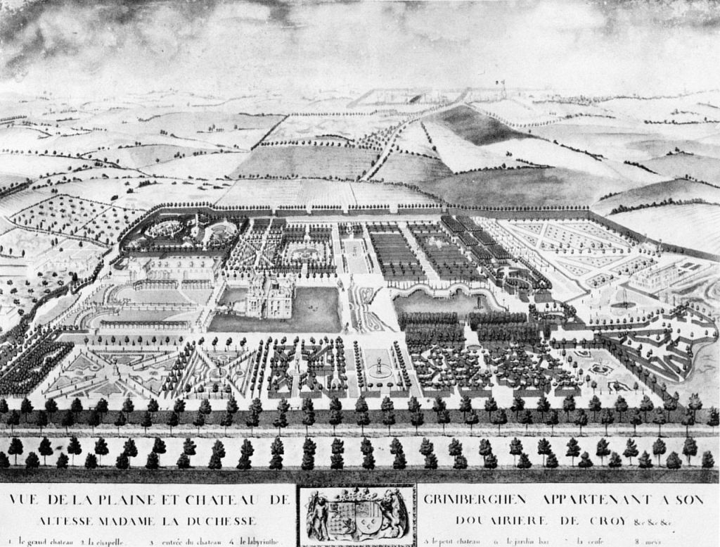Grimbergen (or Grimberghe) is a town just north of the city of Brussels, and had been a lordship, then county, held by the House of Glimes (also known as Berghes) for generations. This family was one of the most prominent in the Southern Netherlands, in fact descended from one of the many illegitimate sons of the dukes of Burgundy in the 15th century. Philippe–François de Berghes was created 1st Prince of Grimberghe in 1686 by the King of Spain. His daughter’s inheritance also included the Château of Feluy, romantically situated on a lake in northern Hainault.