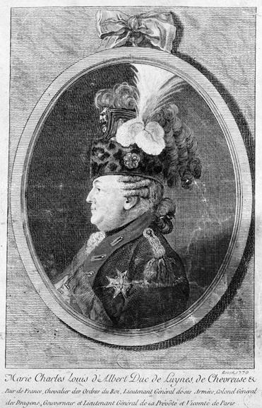 The 5th Duke of Luynes, known as was tradition as Duke of Chevreuse until his father died, led a military career, fighting in the wars of the middle of the 18th century and rising to the rank of Lieutenant-General in 1748, then taking up a court position as Colonel-General of the Royal Dragoons, one of the key regiments of the Royal Guard, in 1754, and being awarded the important post of Governor of Paris in 1758.