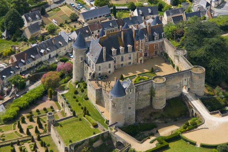 The Lords of Maillé had been one of the most powerful noble families of the province of Touraine since the 11th century. Extinct in 1501, their lands passed to the Laval family, in whose favour the lordship became a county in 1572. The 12th-century fortress built on a rock overlooking the Loire was transformed into a Late Gothic residence in the 15th century, with round towers and larger windows, and was sold to Charles d’Albert in 1619, and became his family seat. He destroyed the central and donjon and constructed in its place a new pavilion to make the château a more comfortable and fashionable residence, and the family maintain the property still today.