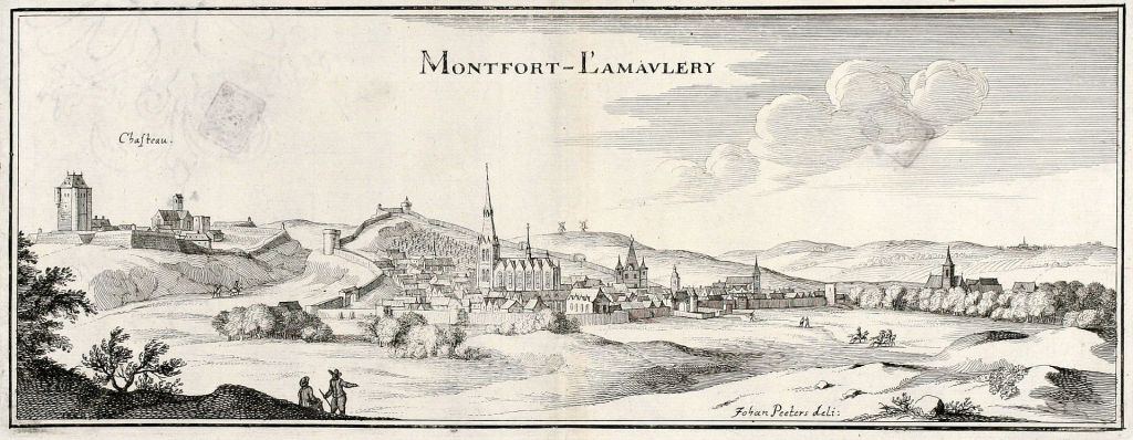 The Castle of Montfort-l’Amaury, only a few miles to the west of Chevreuse, was the seat of one of the most powerful lordships of the Middle Ages, with a powerful line of lords from the 11th century, who rose to become counts of Evreux in 1118, and earls of Leicester in the early 13th century—this includes the famous Simon de Montfort, leader of the baronial revolt against Henry III of England. The lordship of Montfort itself was elevated to a county in 1218, then passed to the House of Brittany (Dreux) in 1249; a junior line, Brittany-Montfort, succeeded as dukes of Brittany themselves from the 1340s but had to wage a long bloody civil war to secure their title. Meanwhile, the castle at Montfort was destroyed in the Hundred Years War, and mostly forgotten. The lands passed with Brittany to the Crown in 1524, then were possessed by various members of the royal family until given to one of the great royal favourites, the Duke of Epernon, in 1587. In 1658, Marie de Rohan purchased the estate from Epernon’s heirs (it was still considered an ‘alienated’ Crown land), and in 1663, as above, gave it to her son Luynes. Full title to Montfort is then given by Louis XIV in 1667 (in exchange for the Chevreuse lands), and renamed ‘Chevreuse’. This was confirmed in 1692, when the King issued new letters patent saying that the son of the Duke of Luynes, Honoré-Charles, could be called ‘Duke of Chevreuse-Montfort’. The ruins of the castle (a single tower known as the ‘Anne of Brittany Tower’) today belong to the local commune.