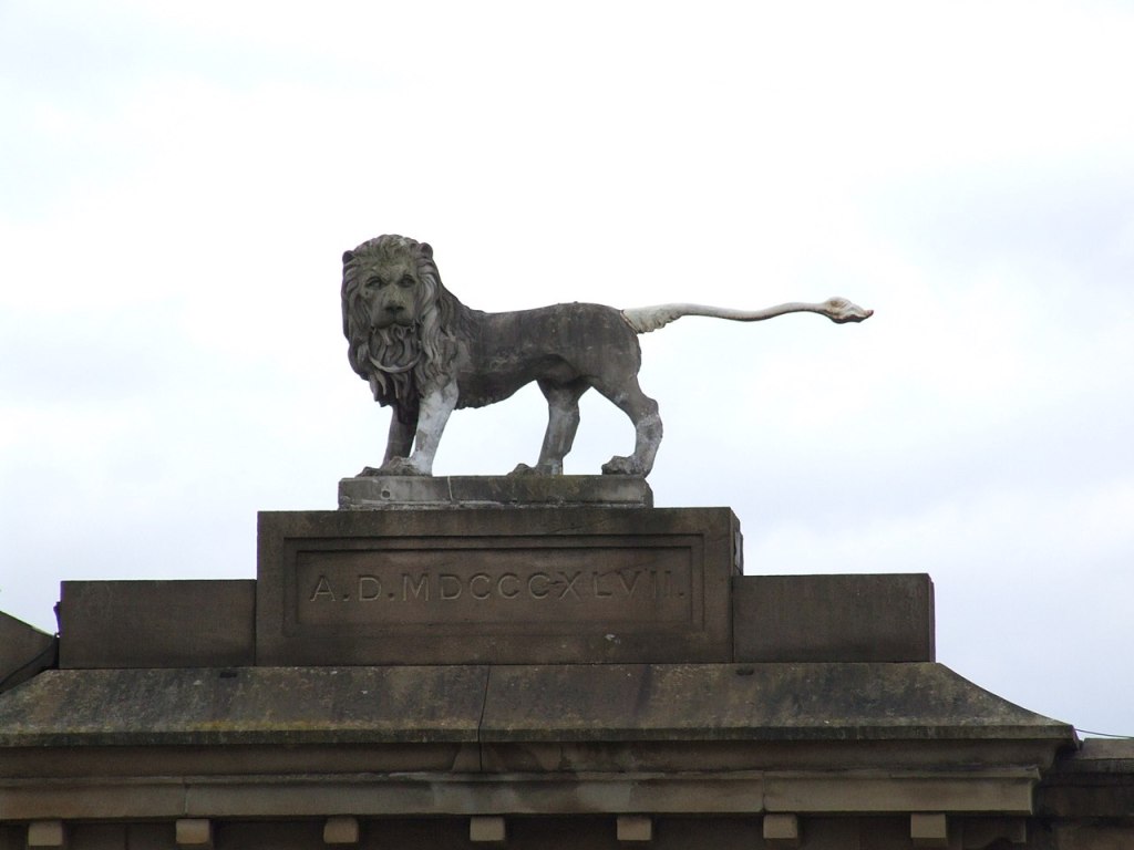 Throughout the 18th century, the Howards developed Glossop as a major centre of the burgeoning Industrial Revolution, first with woollen mills, but later and much more intensely as a centre for cotton weaving. The location was ideal, with a fairly damp climate keeping the raw materials from drying out and ample running water in the surrounding hills to power the mills. By 1831 there were about 30 cotton mills in Glossopdale. And as is more interesting for our story here, the Howards were keen to make this a safe space for Catholic and other dissenting entrepreneurs. After Catholic Emancipation in 1829 they built a new Catholic church in Glossop, followed by other town improvements including a town hall in 1838 and a railway station in 1847—which still displays the Howard Lion above its main doors. The Glossop Estate was sold in 1925, but much of it was donated to the town the Howards built, with placenames remaining as a memory: Norfolk Square, Howardtown, Howard Park, and so on.