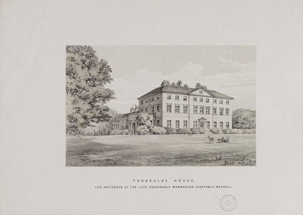 When the 15th Duke died in 1917 he was succeeded by his only surviving son (an older son, Philip had died in 1902), whose mother was heiress of a Scottish landed estate in Kirkudbrightshire (southwest Scotland), and the barony of Herries of Terregles (created for the Herries family in 1490 and passed to the Maxwells in the 1540s). The 16th Duke, Bernard Marmaduke FitzAlan-Howard, was thus also 12th Baron Herries after his mother died in 1945 (and took his curious second name from his Maxwell grandfather). This inheritance included Terregles House, long the seat of the Maxwells, another traditionally Catholic noble family. The old medieval tower house had been replaced in the late 18th century with a grand country house. The estates were sold off after World War I and the house in the 1930s (and was fully demolished in 1962). The Duke having no sons, the barony of Herries passed in succession to his daughters, the third (and still living) being Jane, 16th Baroness, married to the Marquess of Lothian, a conservative politician better known as Michael Ancram.
