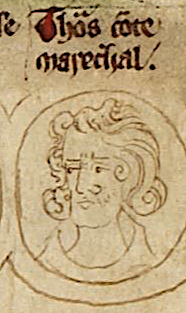 An early Anglo-Norman lord, Gilbert, served in the English royal household as Royal Serjeant and Marshal to Henry I. When he died in 1129, his office was given to his son, John FitzGilbert. He began sometimes to use Marshal as a surname. His elder son John succeeded him as the King’s Marshal and was in turn succeeded by his younger brother in 1194: William Marshal (or sometimes ‘the Marshal’) was one of the most prominent nobles of the reigns of Henry II, Richard I, John I and Henry III, for whom he served as regent in his early years, famously known as ‘the best knight that ever lived’, and rewarded with an earldom, Pembroke, in 1199. His family rose and fell with great speed—the earldom of Pembroke passing through all five of his sons in turn—and the office of Lord Marshal (or Marshal of the Court) passed via his daughter to the Bigod family, great landowners in East Anglia.