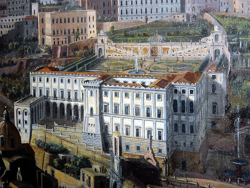 The author Sir Harold Acton’s roots in Naples were thus extensive. But he was born and raised in Florence. His father Arthur, an illegitimate cousin of Alfredo and Amedeo, was a British architect and art dealer. In 1896 he was in Chicago helping to design the Italianate features of the new buildings of the Illinois Trust and Savings Bank, and soon after married the Bank’s president’s daughter, Hortense Mitchell. With her father’s money, they purchased the Villa La Pietra, in the hills just north of Florence, in 1907. It had been built in the Renaissance, and owned for many centuries by the Capponi family (one of Florence’s major dynasties). The Actons laid out a formal Baroque Italian garden, filling it with almost two hundred statues, and brought together a valuable collection of artworks in the house itself.