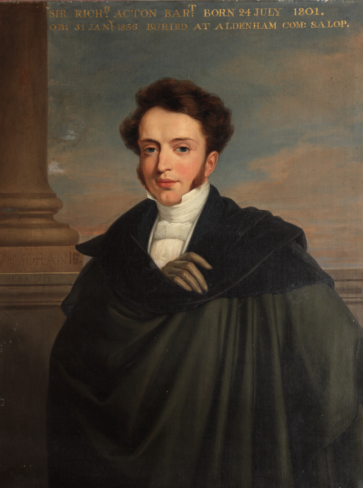 There are early traces of a landowning family in Shropshire in the 13th century, who held local offices and assumed the name ‘de Acton’. There’s a village with this name (possibly from ‘oak town’) in the southwest part of that county, not far from the Welsh borders. But their seat became Aldenham Park, a short distance to the northeast, closer to the county town of Shrewsbury (though there are also nearby villages of Acton Burnell and Acton Round), and not far from Wenlock Edge. Their local constituency was Bridgnorth, and numerous Actons were Members of Parliament from there across the centuries.