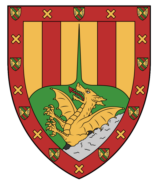 In 1467, the 1st Duke of Alburquerque fought for Enrique IV against rebels supporting a coup attempt by the King’s younger half-brother, the Infant Alfonso. Again he was rewarded, with another title, Count of Huelma, 1474. But the next year, the King died, and, against expectations, Alburquerque rallied to the cause of Isabella to succeed him—against the claims of his own reputed daughter, Juana (now called ‘la Beltraneja’, the little Beltrán). The new Queen of Castile thus confirmed his possession of Alburquerque, Ledesma and Huelma, and following the War of Castilian Succession (1475-79), he served her (and her husband, Ferdinand of Aragon), for the next decade, notably in the campaigns to conquer the Kingdom of Granada. He died the year that city was taken, 1492, and was buried in the Franciscan convent in the town of Cuéllar. This church became the sepulchre for the family for several generations, and though the buildings were destroyed in later wars, several of its sculpted treasures are now on display in the museum of the Hispanic Society in New York City. One of these clearly displays the coat of arms of the La Cueva family, now raised to the level of the grandees of Spain: on the left side of the altar, their arms bear a distinctive wyvern (a two legged winged dragon; in some it is golden, but in other versions it is green; and in some it is emerging from a rock or mountainside); the 1st Duke’s arms also bore small versions of the arms of the Mendozas (his wife’s family) in the border around the edges.