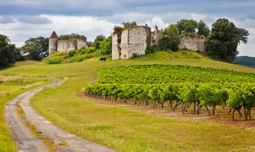 Several offshoot branches were founded in the Middle Ages, and more lordships were acquired by the branch of Gondrin, notably the lordship of Castillon (c. 1400), in the area downriver from Bordeaux known as the Médoc (now on the edge of the village of Saint-Christoly). Its incredibly ancient tower still stands, though it has served as a home for pigeons (a pigeonnier) since the 18th century. The coat-of-arms for this family, three moors’ heads over a castle, were added to the wavy blue and white lines of the Gondrin arms.