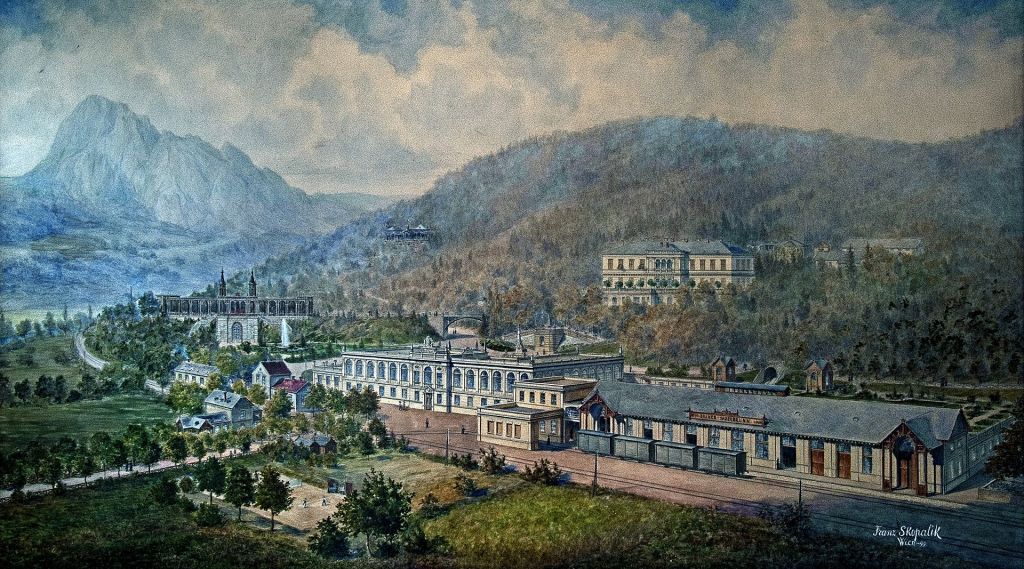 The second major branch of the Lobkowicz family, founded by Jan Popel (d. 1470), produced all the later lines of counts and princes. Until the extinction of the Hasištejnská branch, they used the additional surname ‘Popel’, taken from the village of Popelov in Českolipska (in the far north of the Kingdom). The word popel in Czech means ‘ashes’, and the family turned this into a punning motto: ‘Popel jsem a popel budu’ (‘I am ashes and ashes I will be’), reminiscent of the lines spoken about piety humility at a Christian funeral. This branch split in the early 16th century into the Bílina branch and the Chlumec branch, named for their primary residences. As above, it was the cadet branch that surpassed the senior branch in prominence, so before we get to the line of princes, we should look at the line of counts. The Castle of Bílina was in northwest Bohemia, near the mountains. It was famous for its spa waters—developed as an international business in the 18th century. The castle was built in the 13th century, and acquired in 1502 by this branch of the Lobkowicz family. Violently re-catholicised after the revolt of 1620, they nonetheless held on to it, rebuilt it as a baroque palace in the 1670s, then passed it to the line of princes by marriage in the early 18th century. The spa was developed as a major resort in the 1870s, with stunning buildings including a faux Roman temple. Like many properties, Bílina was confiscated by the state after the Second World War, then restored to the family after the fall of Communism. The spa was sold to a private company in 1997 (and they still sell the famous bottled water).