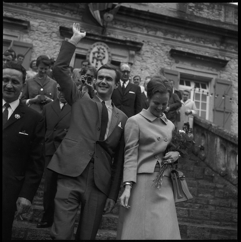 Princess Margrethe had originally not been the designated heir to the Danish throne, as the King her father (Frederick IX) had a younger brother, Prince Knud, who was assumed to be the next in line—indeed, in one of the longest unbroken lines of patrilineal succession in European royal history (back to 1448, though with a bit of a hiccup in 1863). In 1953, the Danish Act of Succession was modified to allow for female succession, meaning Knud and his two sons were now placed lower in the line of succession, after the King’s three daughters. Both of these sons, Ingolf and Christian, married in the last years of the reign of King Frederick IX without obtaining royal permission, so gave up their dynastic rights and took the new title, Count of Rosenborg. It wasn’t until the 1990s that the Danish Crown formally permitted marriage of a royal to a commoner without losing their status (and indeed, neither of Margrethe’s sisters married ‘unequally’), so it is a sleight of hand that Henri de Laborde’s family’s use of the title ‘Count’ seems to have allowed Margrethe to have slipped past this issue in 1967, when her cousins could not, in their marriages of 1968 and 1971.