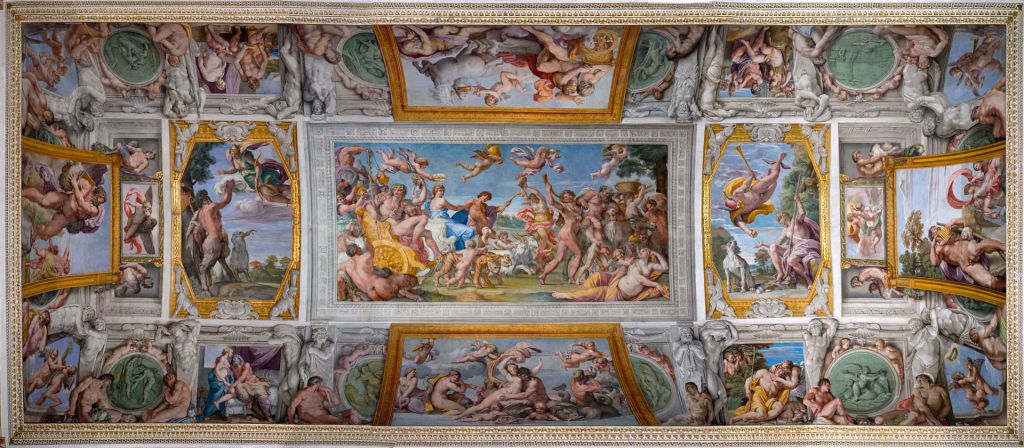 Every good Roman cardinal needs a country retreat, so Cardinal Alessandro Farnese rebuilt his grandfather’s villa in the Lazio, not far from his brother’s duchy of Castro. The Villa Farnese at Caprarola, with its famous pentagonal shape and circular courtyard, would become a model of the Roman country house and the showpiece for the family. One of the most famous rooms is the Sala dei Fasti Farnesiani (the ‘Room of Farnese Deeds’), which features a fresco commemorating Cardinal Alessandro’s efforts at bringing peace to Europe by coordinating a meeting between François I and Charles V in 1540. This palace too became part of the unified Italy after 1860, and was selected as the residence of the heir to the throne. Today the villa’s secondary building, the casino or summer house, is the country residence of the President of the Republic of Italy, while the main building houses a museum.