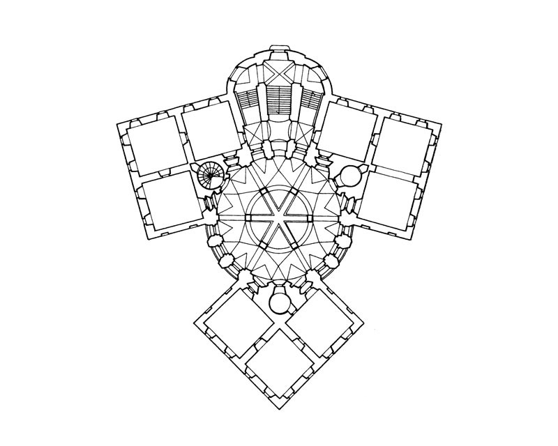 Count František Ferdinand built a new family residence at Chlumec, Karlova Koruna Castle in the early 1720s: named ‘Charles’ Crown’, in honour of the coronation of Emperor as King of Bohemia. This castle, a baroque pleasure palace with a unique floorplan, on a small hill overlooking a park, is still in amazing shape, and was restored to the Kinsky family in 1990 following the period of Communist rule. The nearby hexagonal Chapel of the Annunciation (later of St John the Baptist) became the family sepulchre for many years.