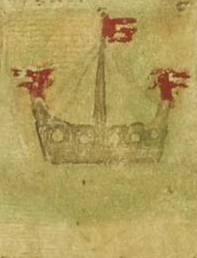 ships of course feature prominently, and this early image of a galley or lymphad became the arms of the Croven dynasty and later the kings of the Isles