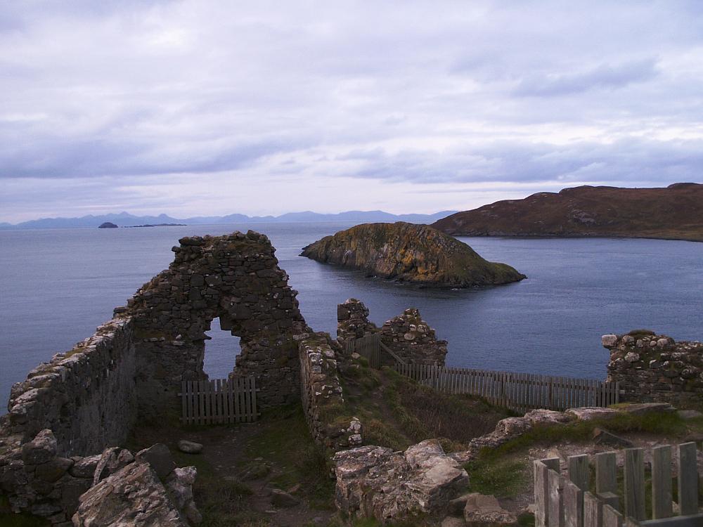 The Chief of MacDonald of Sleat—who was also, though not really recognised at the time, Chief of all of Clan Donald—continued to reside on Skye. Dunscaith Castle was abandoned to ruin in the early seventeenth century and they moved to Duntulm, at the other end of Skye on the northern peninsula, Trotternish. This castle was also from the fourteenth century, and was now expanded, but also abandoned in the mid-eighteenth century for a nearby modern house, Monkstadt.