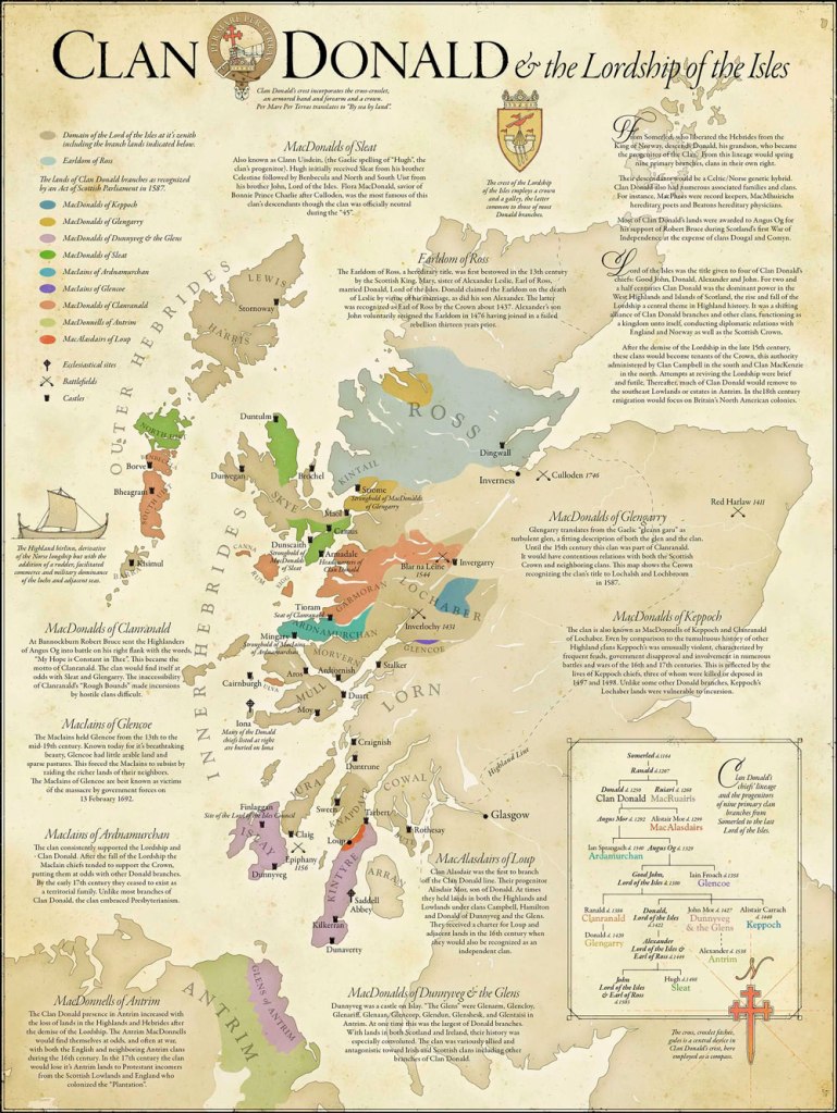 a helpful map from Clan Donald website showing the distributions of the branches covered in this post