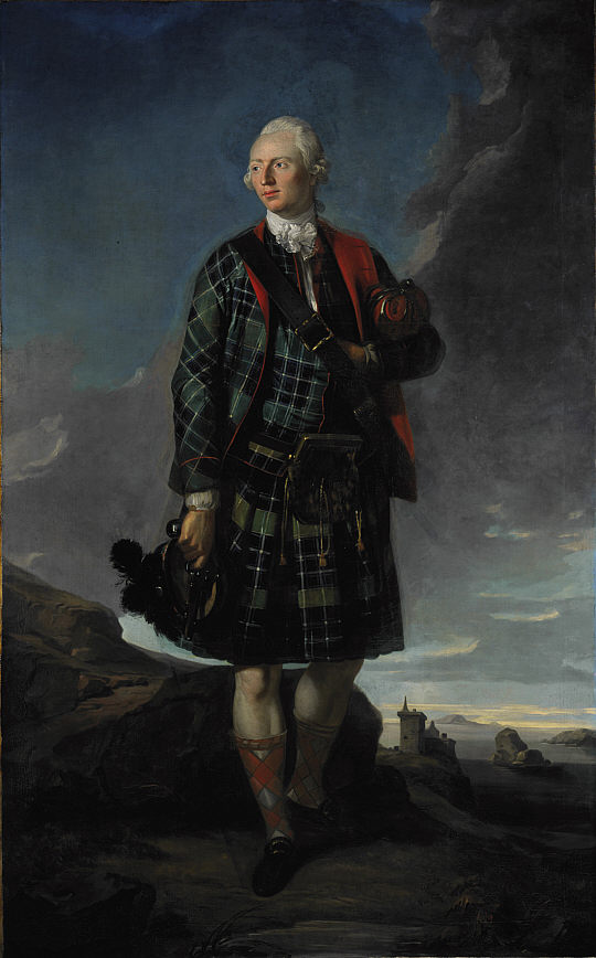 Donald Gorm (‘Blue Donald’) succeeded as 8th Chief in 1616 and was created Baronet, of Sleat, in 1625. He was a Royalist who fought for Charles I, and died in 1643. The 4th Baronet, Sir Donald, was a Jacobite, and was created ‘Lord Sleat’ in 1716 (it is considered to be in the ‘Jacobite Peerage’, so legally never existed within Great Britain). This branch was the only one that did not later support the Jacobite uprising of 1745, so they kept their lands, while others had their estates confiscated. They were eventually rewarded: in 1776, the 9th Baronet (or 6th Lord Sleat) was created Baron MacDonald, of Slate, in County Antrim, in the Peerage of Ireland.