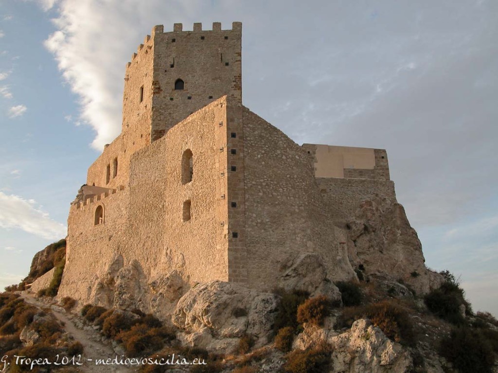 By this point, most of the oldest Sicilian noble families knew they could weather the storm—though they didn’t have a ‘de’ or a ‘von’ like other princely families, a name like Lanza or a Filangieri drew power from their ancientness, going all the back to the Norman conquest of this island in the eleventh century. The Tomasi were different: their position as magnates only dated back to the late sixteenth century (though see below for grander claims). But they cleverly hitched their star to the heritage of one of these oldest families, the Chiaromonte—a literal translation from the French ‘Clermont’—who arrived with other Normans and held the highest offices in the Kingdom for centuries. Eufemia Chiaromonte inherited the lordship of Montechiaro (a reversal of her surname), and in about 1408 took it in marriage to the Caro family. The Castle of Montechiaro is perched on a cliff high above the sea on the south coast of Sicily, southeast of the provincial capital of Agrigento. Built in the 1350s, it was an important defensive structure against raids by pirates from the North African coast, also known as the ‘Barbary Pirates’, who frequently raided this coast to capture slaves.