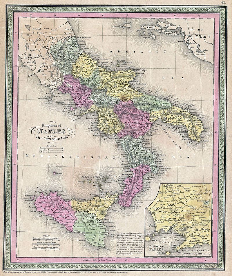 There are several characteristics that are striking about the Sicilian high aristocracy and make them different to other dukes and princes in this blogsite. For starters, most of them do not have a particle (a ‘de’ or a ‘von’) to show they are nobly born—their surname is sufficient; in the case of Lampedusa, it is Tomasi. Secondly, their numbers are inflated, with over one hundred princely titles, meaning that the power of that title is somewhat diluted. Yet thirdly, they were actually incredibly powerful as landowners and political players well into the modern era for the simple fact that for much of its history, Sicily was governed from afar and its magnates were left to mostly manage their own affairs. This is in fact the major crisis facing the Prince of Salina in the novel. From the early fifteenth century, Sicily was ruled from afar, either from the Kingdom of Aragon, then after 1734 by a new regime based in Naples, the Bourbons. When, in the Netflix series, the Prince of Salina is described as a ‘Bourbon prince’ it is a bit misleading, since the Sicilian aristocracy only tolerated their Bourbon kings as long as they stayed far away on the mainland and left their local autonomy untouched. This ‘understanding’ was tested by events during the revolutionary era at the very end of the eighteenth century when the royal family had to flee Naples and took refuge in their second capital in Sicily, and tested again when Sicily erupted in revolution again in 1848 and briefly deposed the Bourbons. Still, the princes saw it in their best interests to maintain the status quo, and to not join in the nationalist movement sweeping the Italian peninsula at the end of the 1850s, which planned to join together the multiple duchies and principalities into one unified—and politically liberal—Kingdom of Italy.