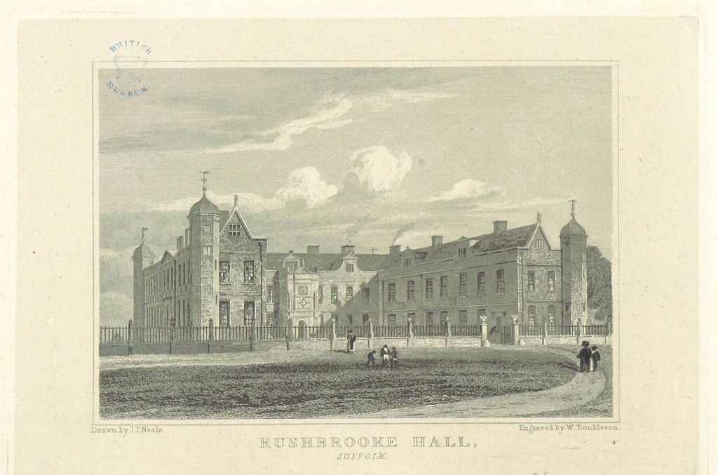 The Duke did not inherit the Wood estate, notably Loudham Hall, and he is noted as early as the 1740s as spending much of his time at his brother-in-law’s estate, Raby Castle, in County Durham. He lived at Cleveland House when in London, and rented out houses in the countryside for short periods. A printed peerage from 1766 lists his residences as ‘Bayles, near Windsor’ (Baylis House in Berkshire, owned by the Osborne family, dukes of Leeds), and ‘Combe-park, Surrey’ (probably Coombe House, near Croydon). Further afield, we see that he rented Rushbrooke Hall, but only for a few years in the 1760s. Like Loudham, Rushbrooke is located in Suffolk, but on the western side of the county, closer to Bury St Edmunds. This moated manor house had been in the Jermyn family since the 1230s. The 2nd Baron Jermyn died in 1703 and his daughter took the house by marriage into the Davers family (baronets) who rented it out to the Duke of Cleveland, but only for a few years in the 1760s. In the nineteenth century, Rushbrooke was rented out to a family of that name. By the mid-twentieth century it fell into disrepair and was demolished.