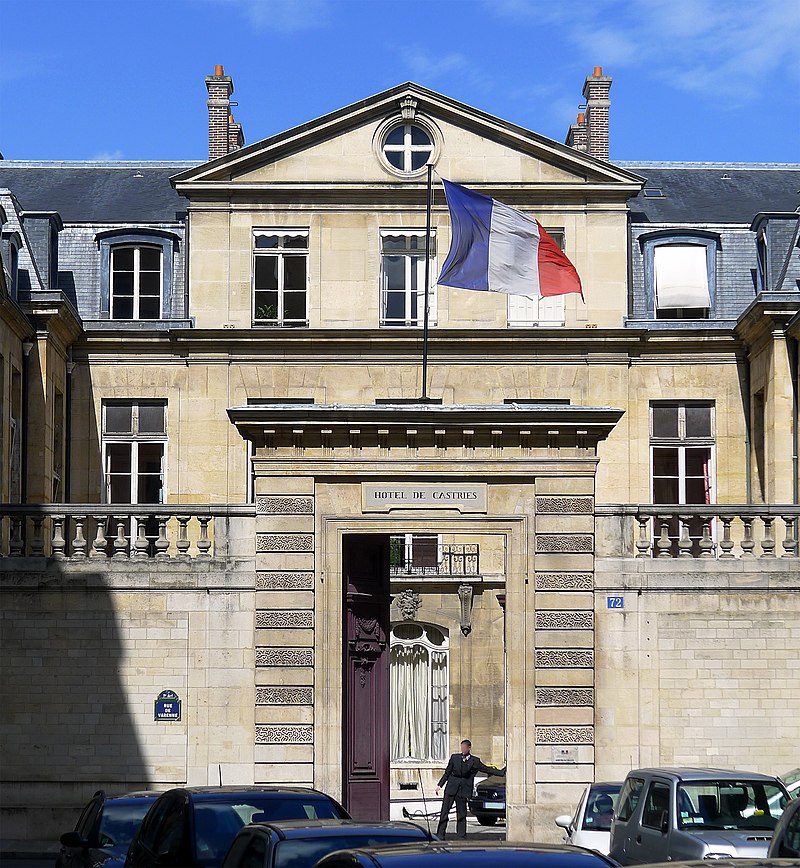 In the city itself the Marshal lived at the Hôtel de Castries, which he rebuilt in a more up-to-date style in the 1760s using money he inherited from his uncle, the Marshal de Belle-Isle. This hôtel particulier was built on the rue de Varenne in the faubourg Saint-Germain in the late seventeenth century by the Seigneur de Nogent. It was sold to the La Croix family in 1708, purchased with money from Cardinal de Bonzi. In 1790, after the Marshal left France, the house became the seat of the Ministry of War, then was returned to the family. Rebuilt by the 2nd Duke of Castries in the 1840s, the Hôtel de Castries then passed to other aristocratic families by marriage after 1886, until acquired once more by the French government in 1946, which housed the Minister of Agriculture here—which was succeeded by various other ministries until the present (recently it has been the seat of the Ministry of Housing and Urban Development, and its successor in charge of migrants, which drew the attention of the public when complaints were made in 2017.