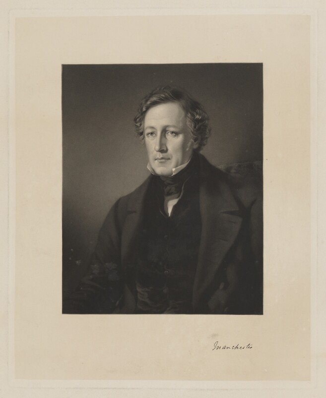 William, 5th Duke of Manchester, succeeded his father in 1788. He had led a fairly quiet life as Lord Mandeville, but made an impact later on, notably as Governor of Jamaica, 1808 to 1827, during which time he oversaw the abolition of slavery in that colony. He had married a daughter and co-heiress of the Duke of Gordon, but she ran off with a footman in 1812 and they legally separated.