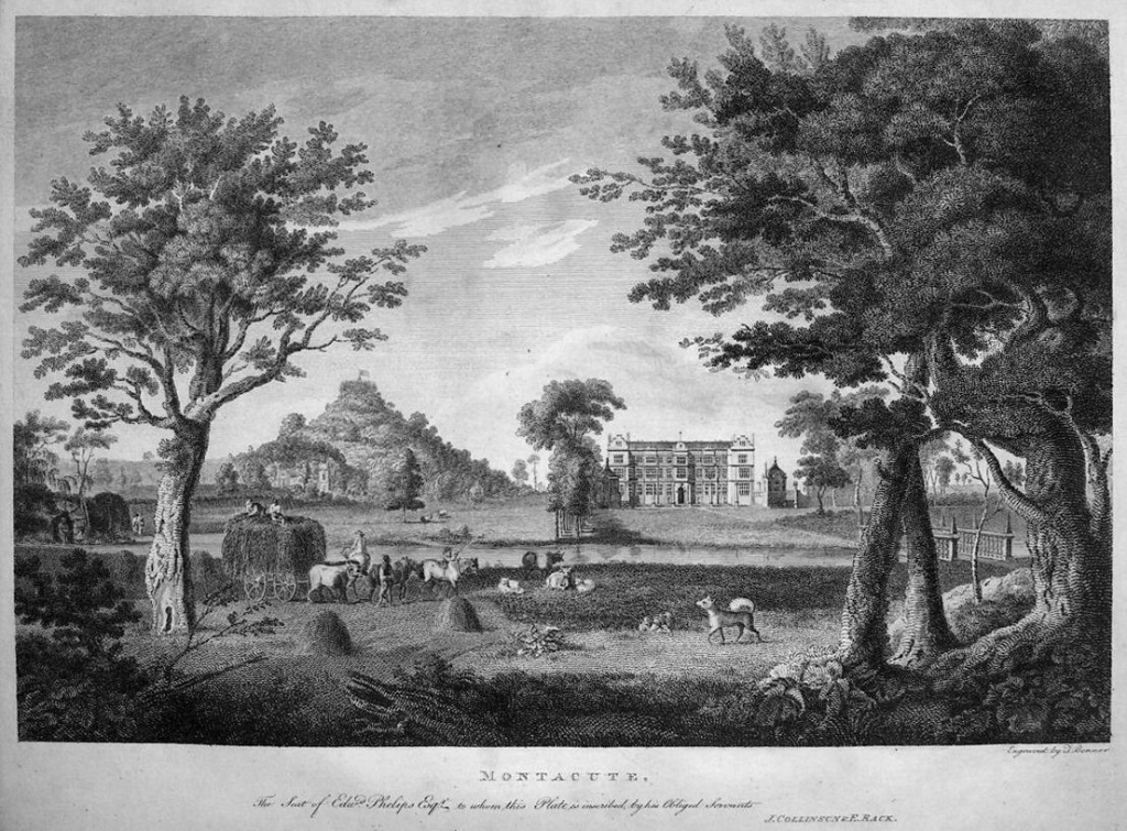 Some have tried to trace the surname to the Norman village of Montaigu-les-Bois in Coutances—and there was a French noble family with this name, which died out in 1715—and that a companion of William the Conqueror, Drogo, came from there and gave his name to estates he was granted in Somerset after the Conquest. Others, however, suggest the opposite, that he took his surname from these estates, for a priory dedicated to Saint Michael on a ‘pointed hill’ (Mont Agud), near Yeovil in eastern Somerset. Historical records show that this area of the county had initially been granted to the Count of Mortain, half-brother of the Conqueror, and that the Norman nobleman named Drogo was in his suite and became his vassal for about twenty fiefs in Somerset and Devon. Two of the key estates he was given in Somerset were at Tintinhull and Wincanton, near Bruton, a bit to the northeast. The latter included Knowle Park, held directly from the King. Also nearby was Shepton Montague. These all passed to the Neville family in the 1420s.
