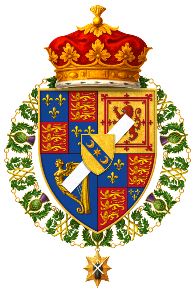 After 1810, the 3rd Duke of Buccleuch and 5th Duke of Queensberry, thus took the name Montagu-Douglas-Scott, and later generations would use a more complex coat-of-arms for the family: Royal Stuart (‘bruised’ for illegitimacy), Scott, Douglas, Montagu (and more recent generations would also add quarters indicating descent from the Campbells, the Brudenells and the Churchills).