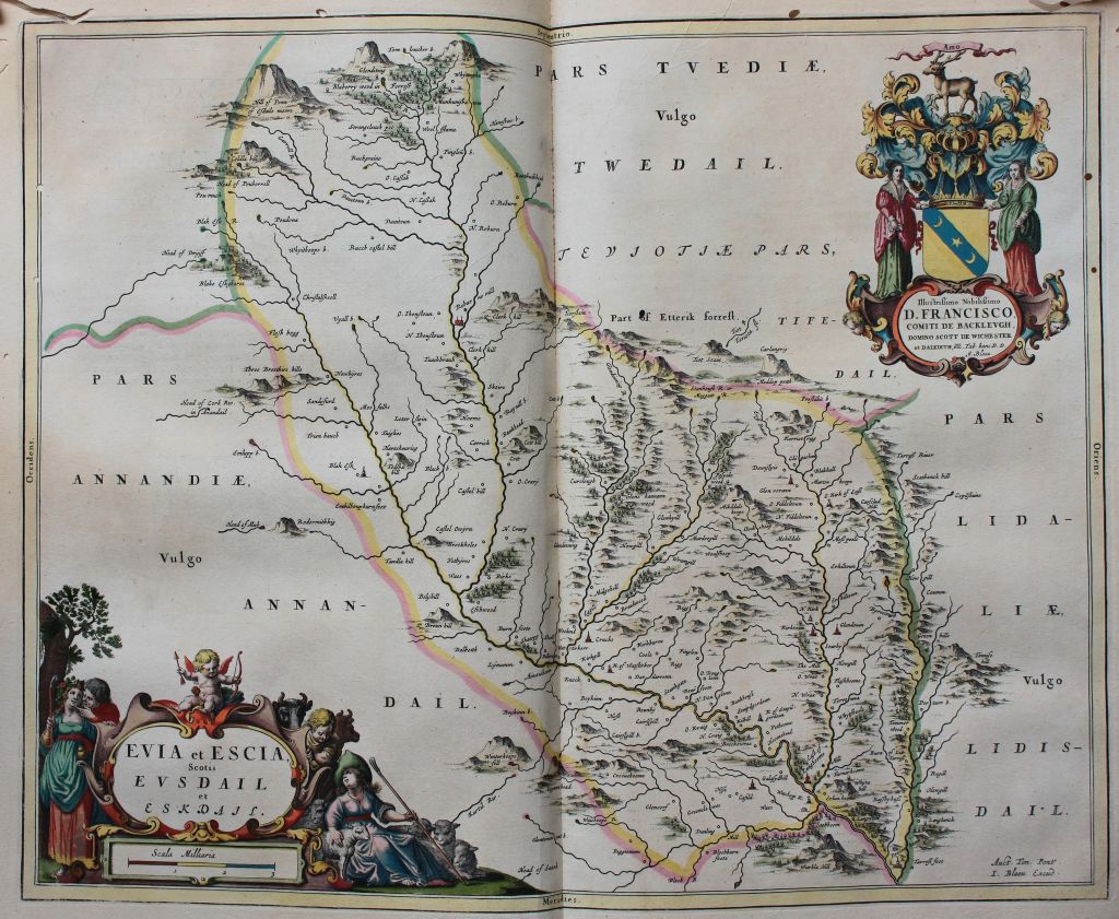 In 1685, the Duke of Monmouth left behind his widow and two sons, James and Henry, born in 1674 and 1676. Other children had died young, and there were several illegitimate children, including Henrietta Crofts who married the Duke of Bolton. Their mother, Anne, Duchess of Buccleuch, re-married in 1688 as the second wife of Charles, 3rd Baron Cornwallis, First Lord of the Admiralty, and they had several daughters, but only one, Isabella, lived long into the next century, unmarried (and used, notably, her mother’s surname, as a potential heiress to the dukedom should her half-brothers die without heirs). The eldest son, James, Earl of Dalkeith, did not become 2nd Duke of Buccleuch since he died in 1705, many years before his mother (who died in 1732). A year after his death, his brother Henry was created Earl of Deloraine. He was a politician elected to the last Scottish Parliament who voted in favour of its dissolution and to join the English Parliament in 1707. This title was based in the usual Scott homeland of Ettrick Forest, named after a burn called Deloraine, an affluent of Ettrick Water. His subsidiary titles included Lord Goldielands, a tower house on the Teviot, south of Hawick; and Viscount of Hermitage, a castle with a very eminent story in the history of Scotland.