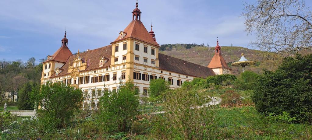 After Balthasar’s fall, the senior branch of the family laid low while the junior branch rose in stature. In 1543 they acquired a large castle south of Graz, Ehrenhausen. This castle was just a few miles upstream from Radkersburg, also overlooking the Mur river valley. A twelfth-century keep had been held by the lords of Pettau from the thirteenth to the fifteenth century. Once in the hands of the Eggenbergs, its defences were strengthened, important now that this region was an active frontier between Habsburg lands and Ottoman occupied Hungary. The castle passed to the senior Eggenberg line in the mid-seventeenth century, then to the Leslie family in the mid-eighteenth and finally to the Attems counts until the 1880s. It too remains in private hands today.