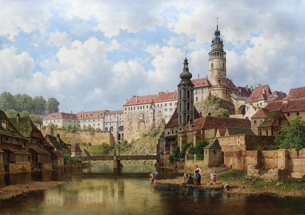 Krumau is today the popular Czech tourist attraction of Český Krumlov. This huge fortress on the upper Vltava river in South Bohemia was built in the 1250s by the Vitkovci family (also called the Krumlov family), and after 1302, passed to a cadet line of their clan, the Rosenbergs. They gave it a makeover in Renaissance style in the sixteenth century, then died out in 1611. The Habsburgs took it over, then as we’ve seen, granted it to Hans Ulrich von Eggenberg, in gratitude in part for the efforts Eggenberg was making to enable the Emperor-King to re-catholicise the nobility of Bohemia. His heirs gave the castle another, baroque, makeover in the 1660s. From the early eighteenth century, the castle of Krumau or Krumlov (called ‘Český’ to distinguish it from another Krumlov in Moravia) belonged to the Schwarzenberg princes, who will have their own blog post. Since 1947 it has been nationalised and is maintained by the Czech state.